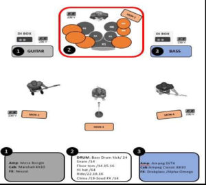 STAGE The group consists of four musicians on stage and a sound engineer;